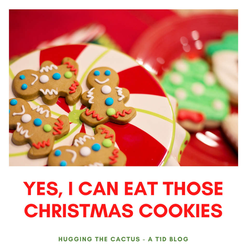 So if I want to eat a bunch of Christmas cookies as part of my Christmastime celebrations, then here’s my friendly reminder that I can – and you bet your bottom dollar that I did, and was very grateful for insulin after doing so.