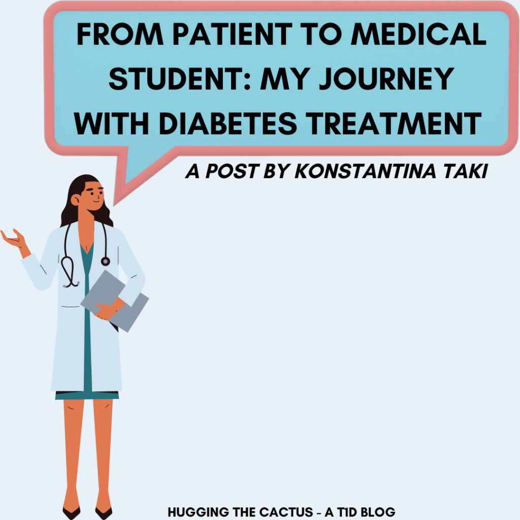This post was written by Konstantina Taki and it was originally published on the T1International blog on June 8, 2021. I’m sharing it here today because the journey from patient to medical student as person with diabetes has always personally fascinated me. Despite my interest in medicine, I’ve never actively pursued it as a career (and probably never will), but I appreciated learning about Konstantina’s experience. Thank you, Konstantina, for sharing your perspective!
